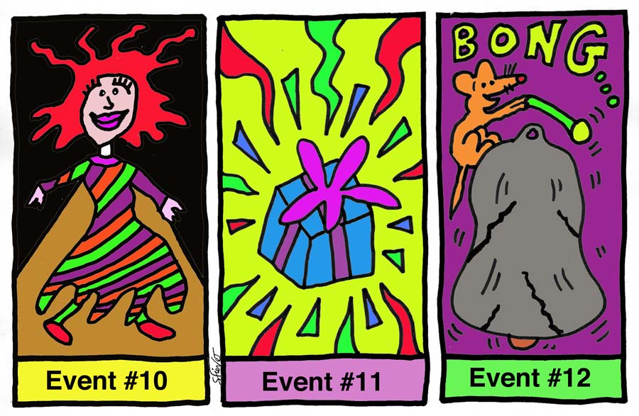 You were brought down to earth in Event #10 so that you would ultimately be brought back up again now. You have been sobbing into the palms of your hands for several minutes. But suddenly everyone at the party rushes toward you bearing gifts. They are all chanting, "We love you. We love you." Hundreds of presents are placed at your feet. You begin opening them to find cars, jewels, extraordinary toys, real estate and more. Just about everything you always wanted is now yours. You quickly forget all about the Modeling Event. Who cares about that when you've got everything you always wanted...and more?